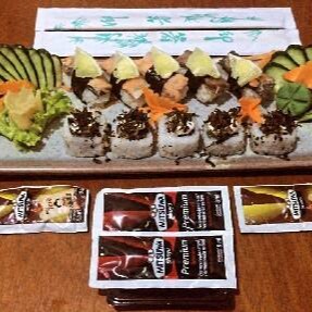 8 Sushis, 2 kappas, 2 uramakis califórnia, 2 salmonmakis e 2 jhous.