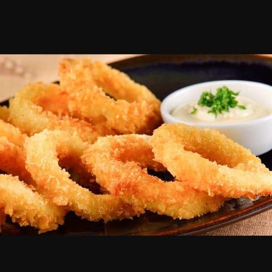 Fatias de salmão com cebola , pimenta , mostarda e molho especial da casa .