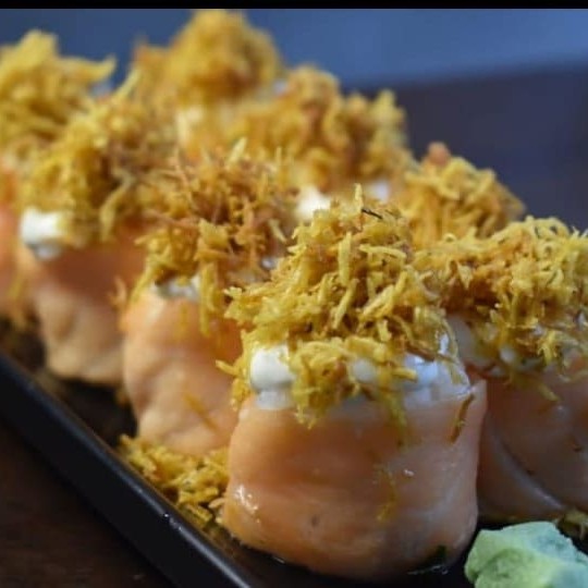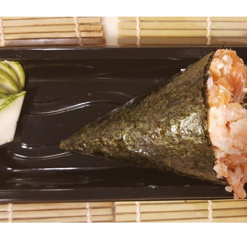 Temaki empanado de salmão grelhado com cream cheese e cebolinha