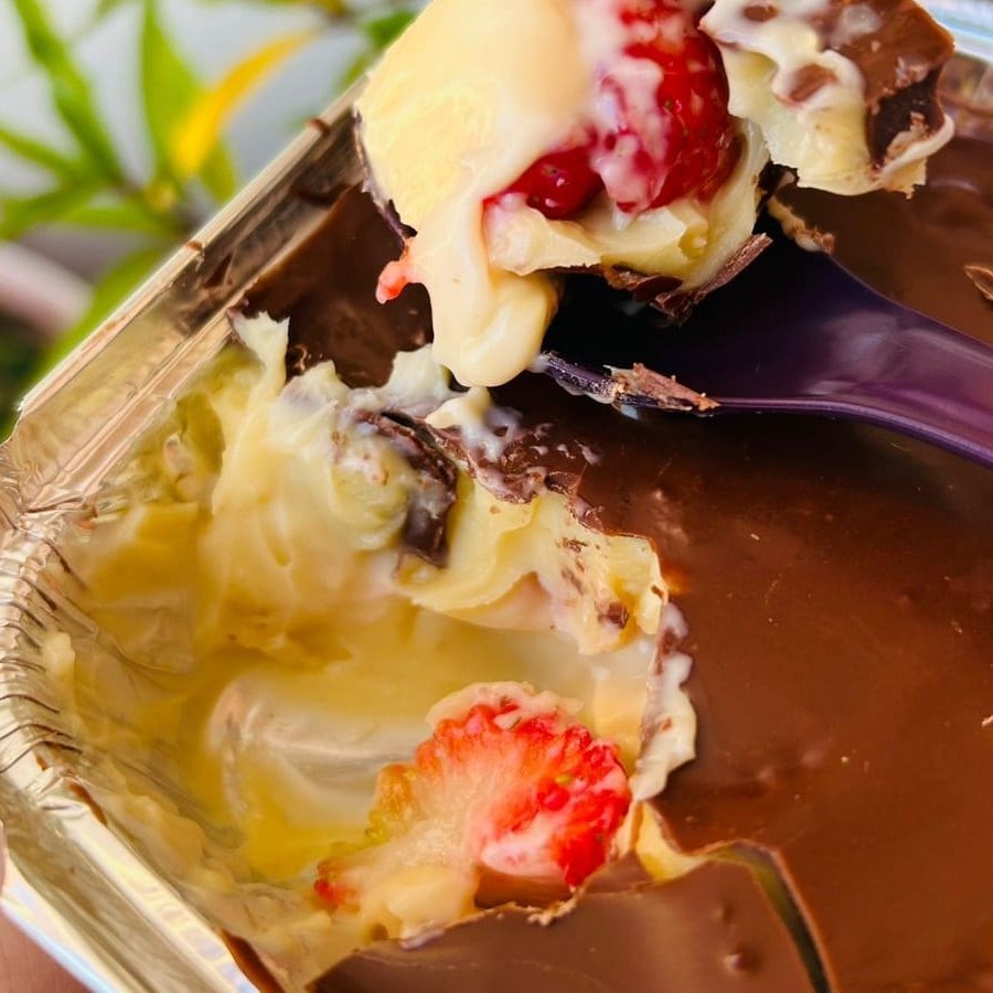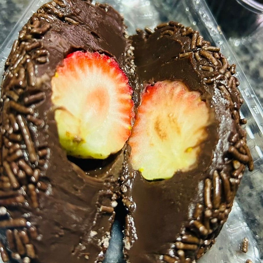 Deleite-se com a nossa irresistível 'Coxinha - Morango com Brigadeiro'. Esta guloseima singular combina a suavidade do brigadeiro, preparado com chocolate de primeira qualidade, e a acidez do morango fresco, resultando em uma combinação perfeita que explode em sabores a cada mordida. Uma opção requintada para os amantes de doces, perfeita para satisfazer aquela vontade de um docinho no meio da tarde. Experimente e deixe-se encantar por essa delícia!