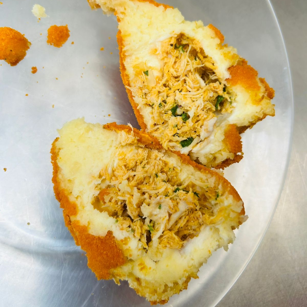 Coxinha massa de mandioca recheio frango com requijao uma delicia imposivel comer so uma!