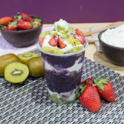 Açaí puro no copo de 400ml: sugerimos a escolha de até 4 acompanhamentos, para que sua experiência seja incrível. Nossos copos são enviados montados - Acompanhamentos não poderão ser enviados à parte.