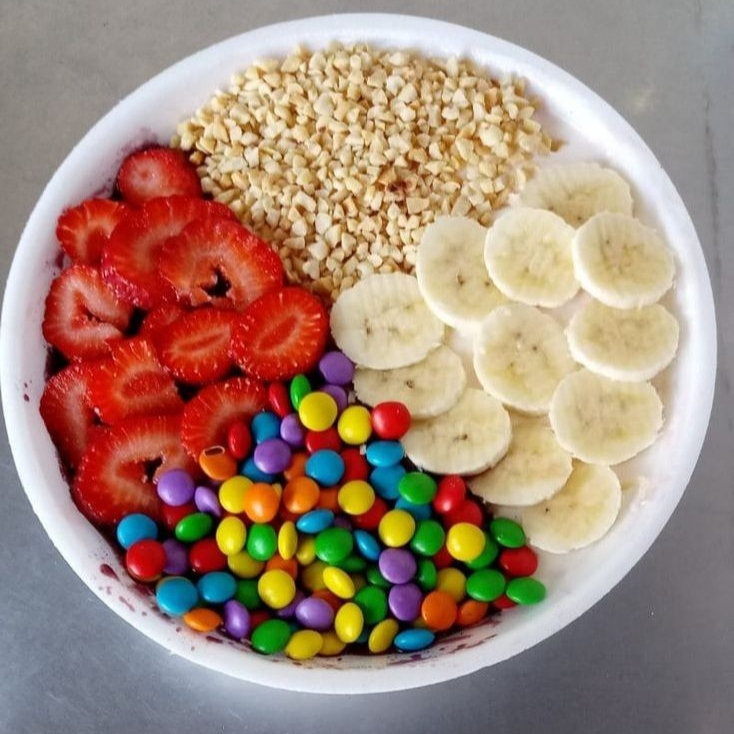 São até 4 acompanhamentos grátis no valor e não poderão ser enviados separadamente. Os adicionais com valor são os pagos á parte. Atenção: O Açaí não vem com itens separados e nem com frutas batidas, todos os acompanhamentos são montados em camadas. Imagens meramente ilustrativas. Não efetuamos substituições de acompanhamentos em itens promocionais.