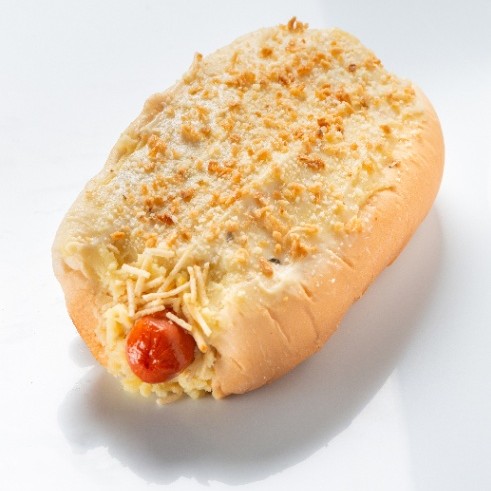 Pão, 2 salsichas, catchup, mostarda, molho de tomate, milho, vinagrete, batata palha, uma generosa camada de purê, queijo ralado, maionese e alho frito + Ragu (fraldinha desfiada ao vinho) + Cream Cheese.
