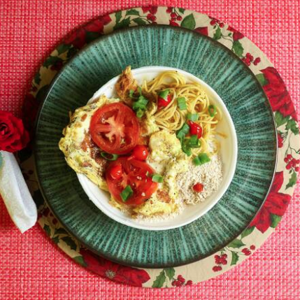 Omelete Com Queijo, Oregano E Tomate (arroz, Feijão, Macarrão Alho E Oleo E Farofa)