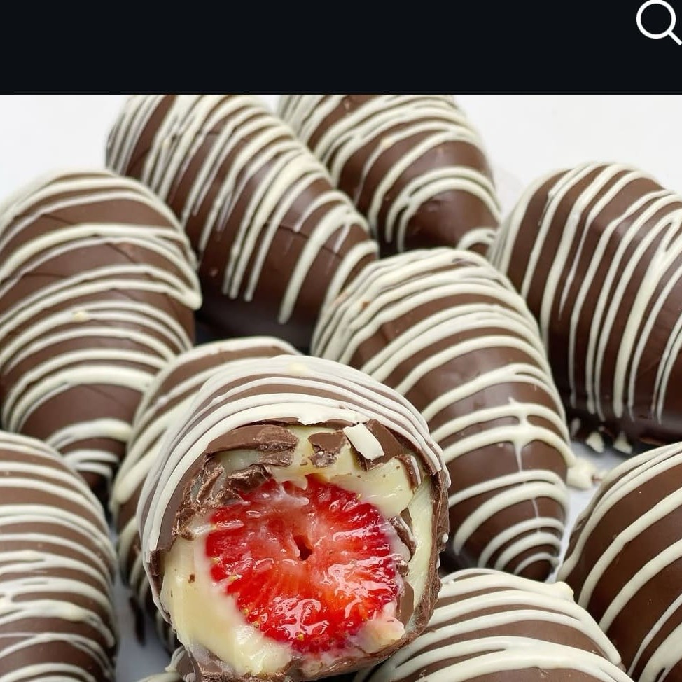 Morangos frescos brigadeiro de Ninho super cremoso com uma ganache de chocolate blend maravigold ,decorado com granulados ao leite. morangos,bombom , sobremesa, chocolate.