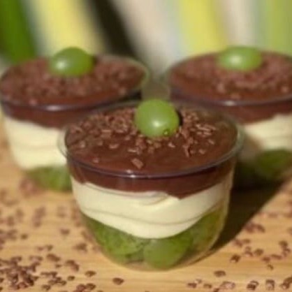Uvas verdes sem caroço , nosso delicioso brigadeiro de leite Ninho cremoso e suculento coberto com uma ganache sedosa de chocolate blend decorado com granulado nobre . Pote 140 ml