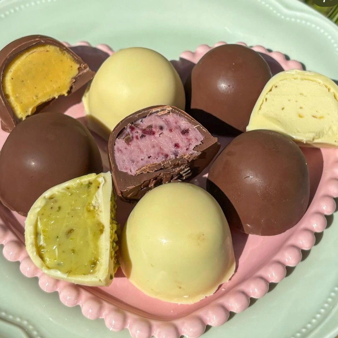2 trufas com casquinha de chocolate com recheios maravilhosos cremosos e suculentos a sua escolha