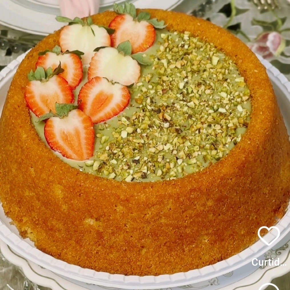 Apresentamos nosso esplêndido 'Bolo dos Deuses', a estrela da categoria 'Novidades'. Este é o nosso bolo piscina mais vendido, composto de uma massa amanteigada extremamente fofinha, que derrete na boca. Sua riqueza é realçada por uma geleia de morango vibrante e fresca, que adiciona uma nota doce e frutada. O bolo é coberto com um encantador brigadeiro de pistache, cujo toque exótico é inesquecível. Finalizamos com pistaches triturados, que adicionam uma textura crocante, e morangos frescos, proporcionando um final refrescante. Uma verdadeira delícia divina!