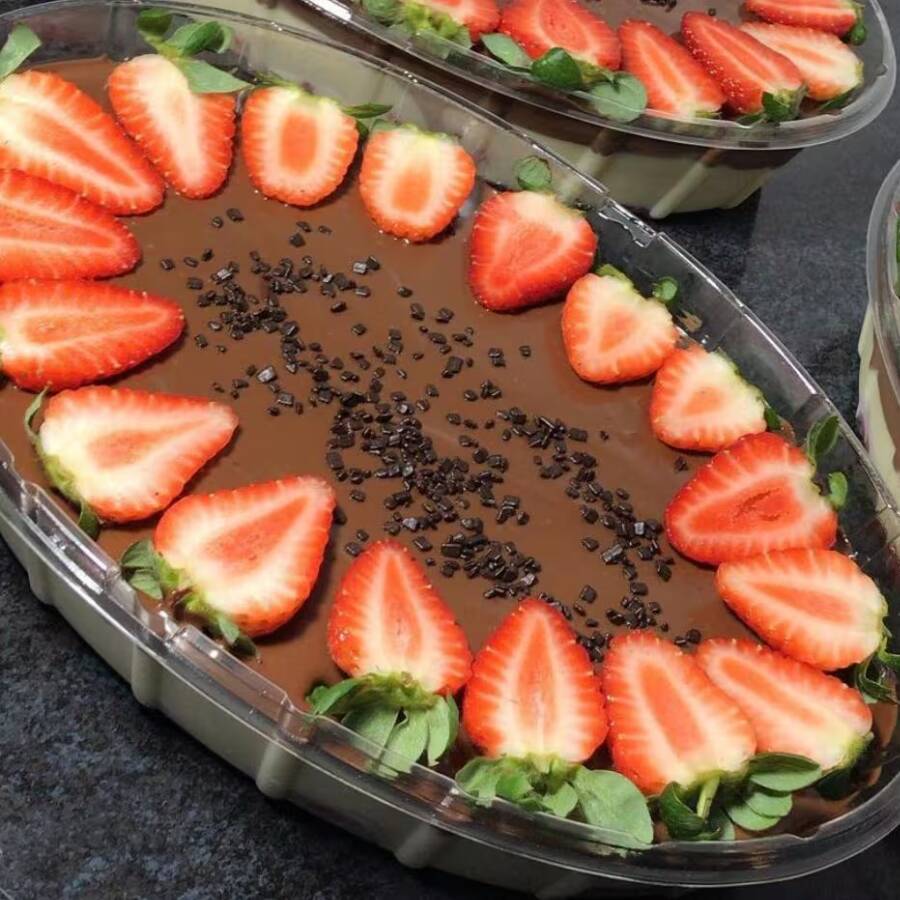 Feito com deliciosos morangos cortados, nosso maravilhoso brigadeiro de Ninho, nossa saborosa ganache de chocolate nobre e decorado com morangos selecionados.