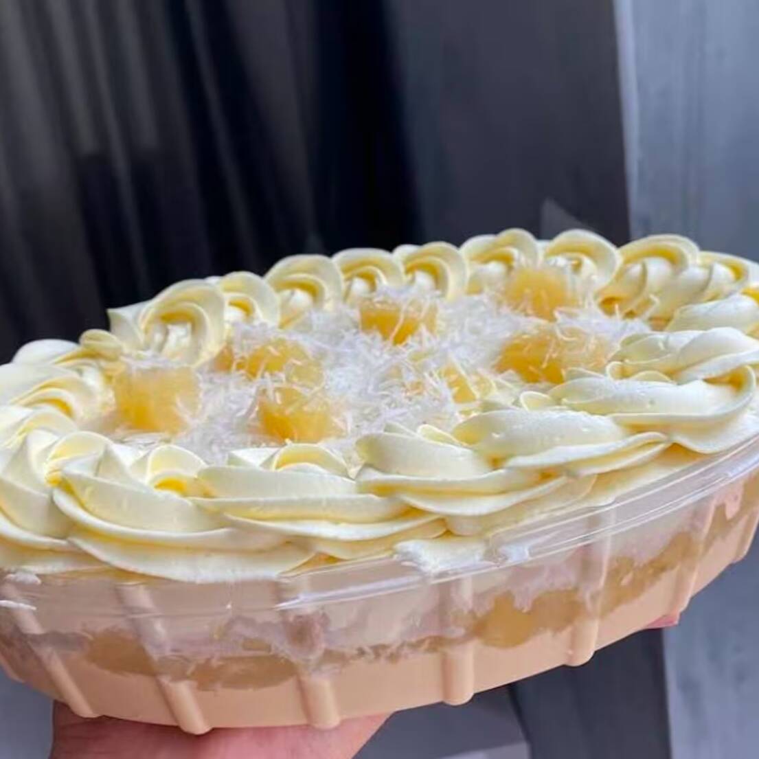Feito com nosso delicioso Creme Laka artesanal, massinha de bolo super leve nosso maravilhoso brigadeiro de coco de dar água na boca, nossa geleia de abacaxi artesanal, finalizando com nosso extraordinário Mousse de Ninho.