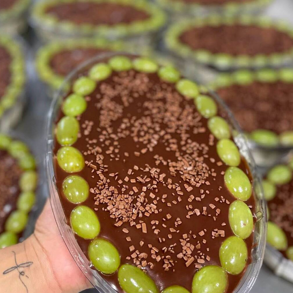 Feito com deliciosas uvas cortadas, nosso maravilhoso brigadeiro de Ninho, nossa saborosa ganache de chocolate nobre de dar água na boca e decorado com uvas selecionadas.