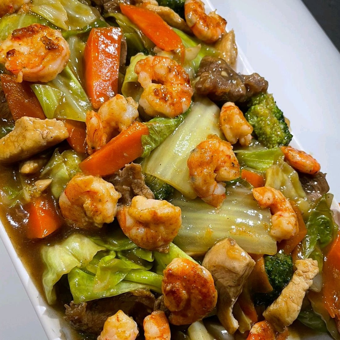 Uma delícia de sabor, feito com legumes selecionados, carne, frango, camarão e macarrão.