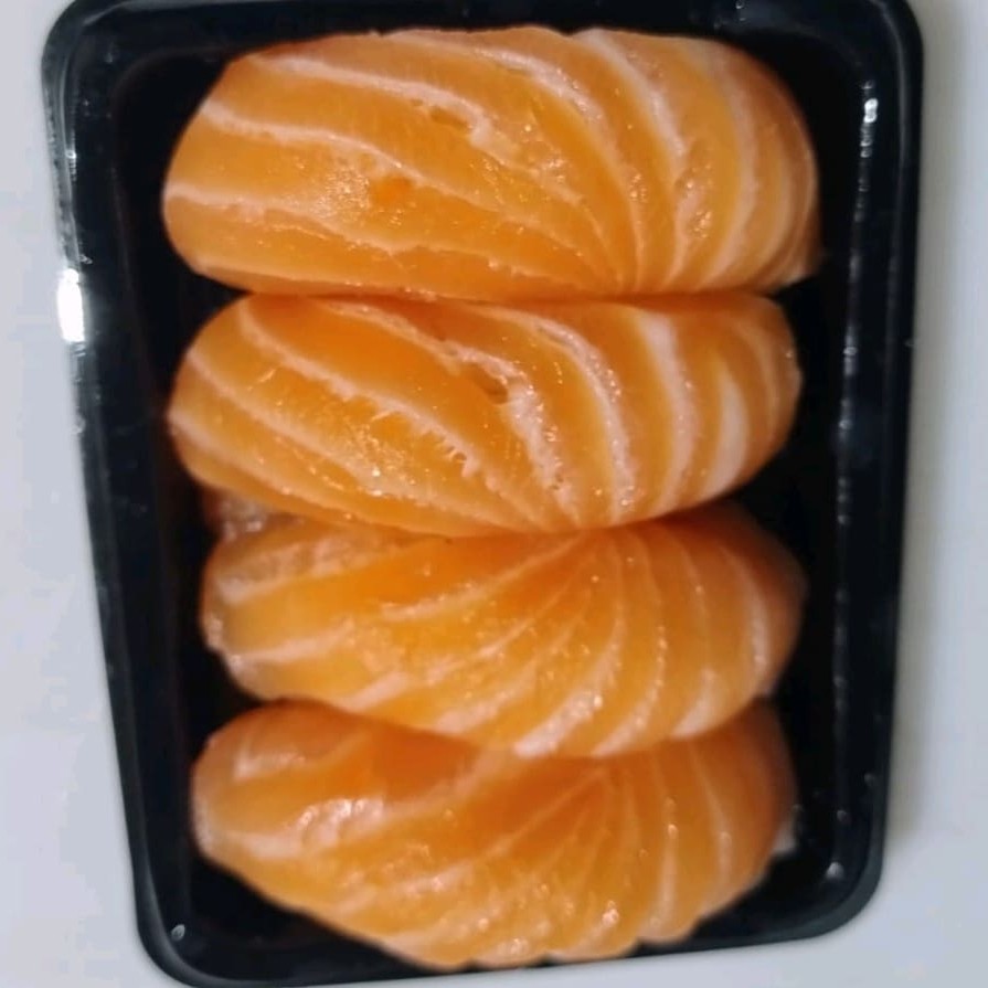4 sashimis de salmão, 4 jyo de salmão,4 batira de salmão,4 nigueri de salmão,4 nigueri de salmão maçaricado(já inclui os saches)