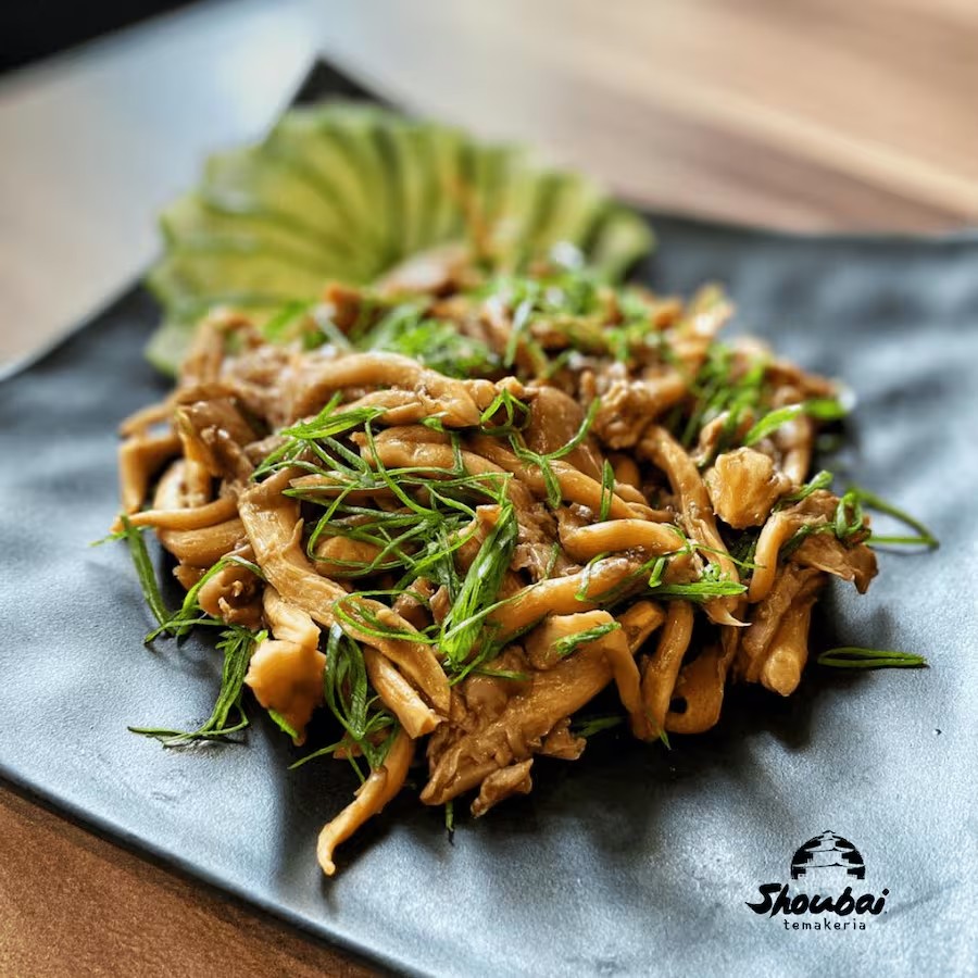 10 peças de shimeji, queijo tofú e tomate seco, envoltos por shari e folha de couve, finalizados com molho tarê e crispy de cebola crocante.