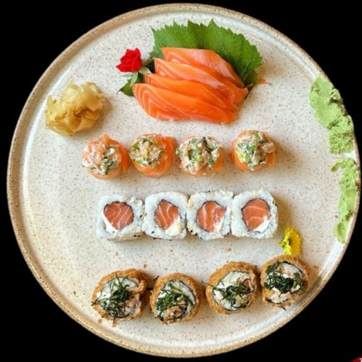 Monte seu combinado com 4 sashimis, 4 hossomakis, 4 joys, 4 niguiris e 8 hot rolls. sugestão: serve 1 ou 2 pessoas.
