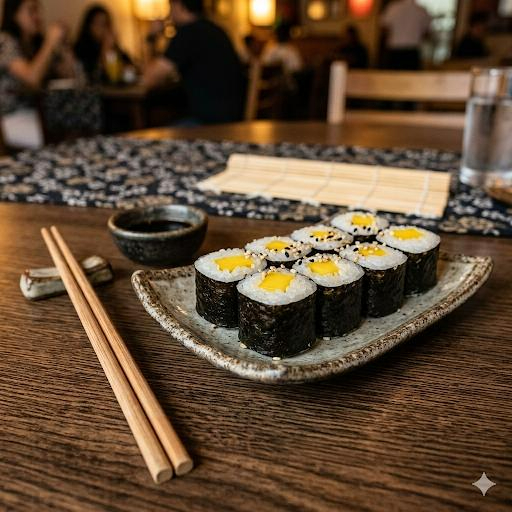 Hossomaki Manga: delicados rolos de manga envoltos em alga, com 8 unidades de sabor suave e irresistível.