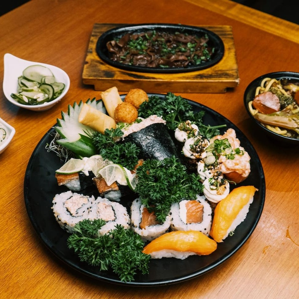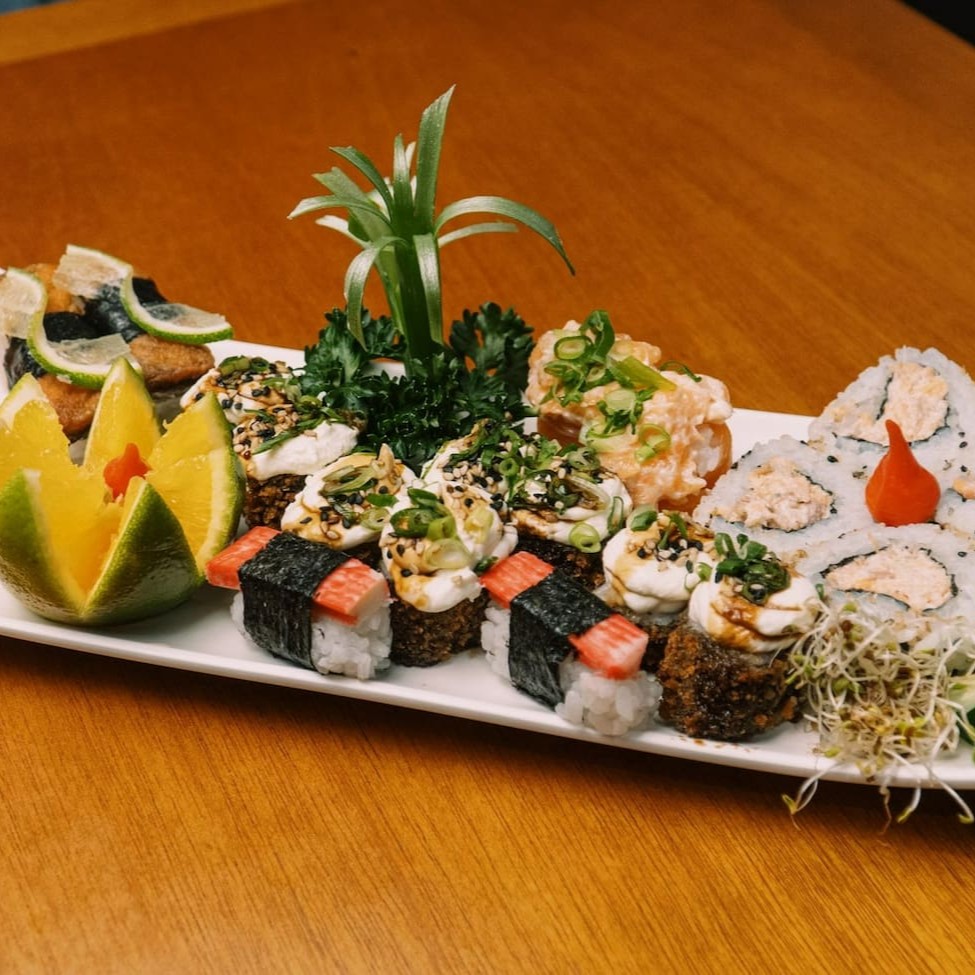 Um combinado feito sob medida (sem opções de troca) Porção de Sunomono Porção de Bifum Porção de Shimeji Porção de Yakissoba 1 Mini Temaki Grelhado 2 Harumaki Queijo 2 Uramaki Grelhado 2 Uramaki Salmão 2 Kani Cremoso 2 Niguiri Skin 2 Niguiri Salmão 2 Djo Salmão 2 Hot Holl
