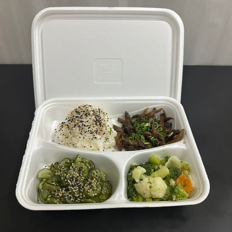 Shimeji, Arroz japonês, Legumes e Sunomono. Serve 1 pessoa. Obs: não alteramos itens.