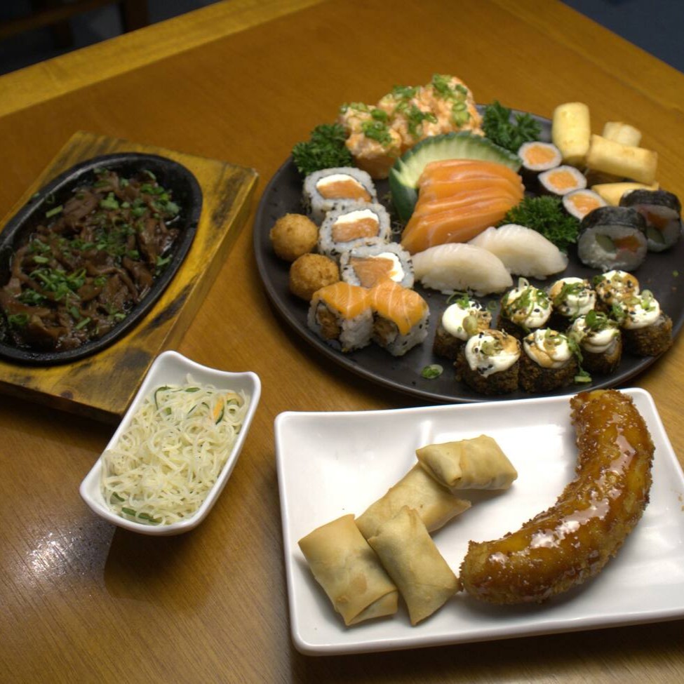 Um combo para uma família pequena (sem opções de troca) Porção de Bifum Porção de Shimeji 2 Harumaki Queijo 2 Harumaki Cream Cheese 2 Kani Cremoso 2 Niguiri Peixe Branco 2 Futomaki Salmão 2 Uramaki Lemon 3 Hossomaki 3 Uramaki 5 Sashimi Salmão 8 Hot Holl 6 Djo (variados) 2 Bananas empanadas e fritas 2 Harumaki Doce