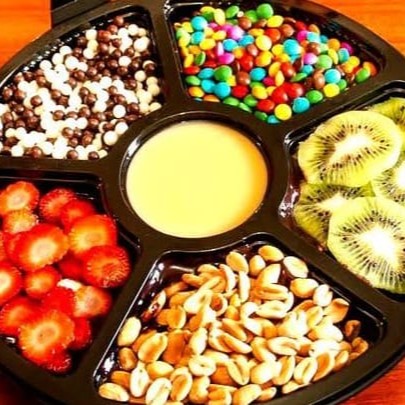 Desfrute da nossa deliciosa Fondue de Chocolate de 360 ml, uma indulgência irresistível para os amantes do chocolate. Este prato de sobremesa destaca-se por sua generosidade, permitindo que você escolha quatro frutas frescas e suculentas para mergulhar no chocolate derretido. Opte por bananas maduras e doces, morangos suculentos, uvas Split crocantes ou uma combinação destas delícias. Cada mordida irá encantar seu paladar com uma mistura sublime de sabores doces e frutados, tornando esta fondue a sobremesa perfeita para compartilhar e desfrutar em qualquer ocasião.
