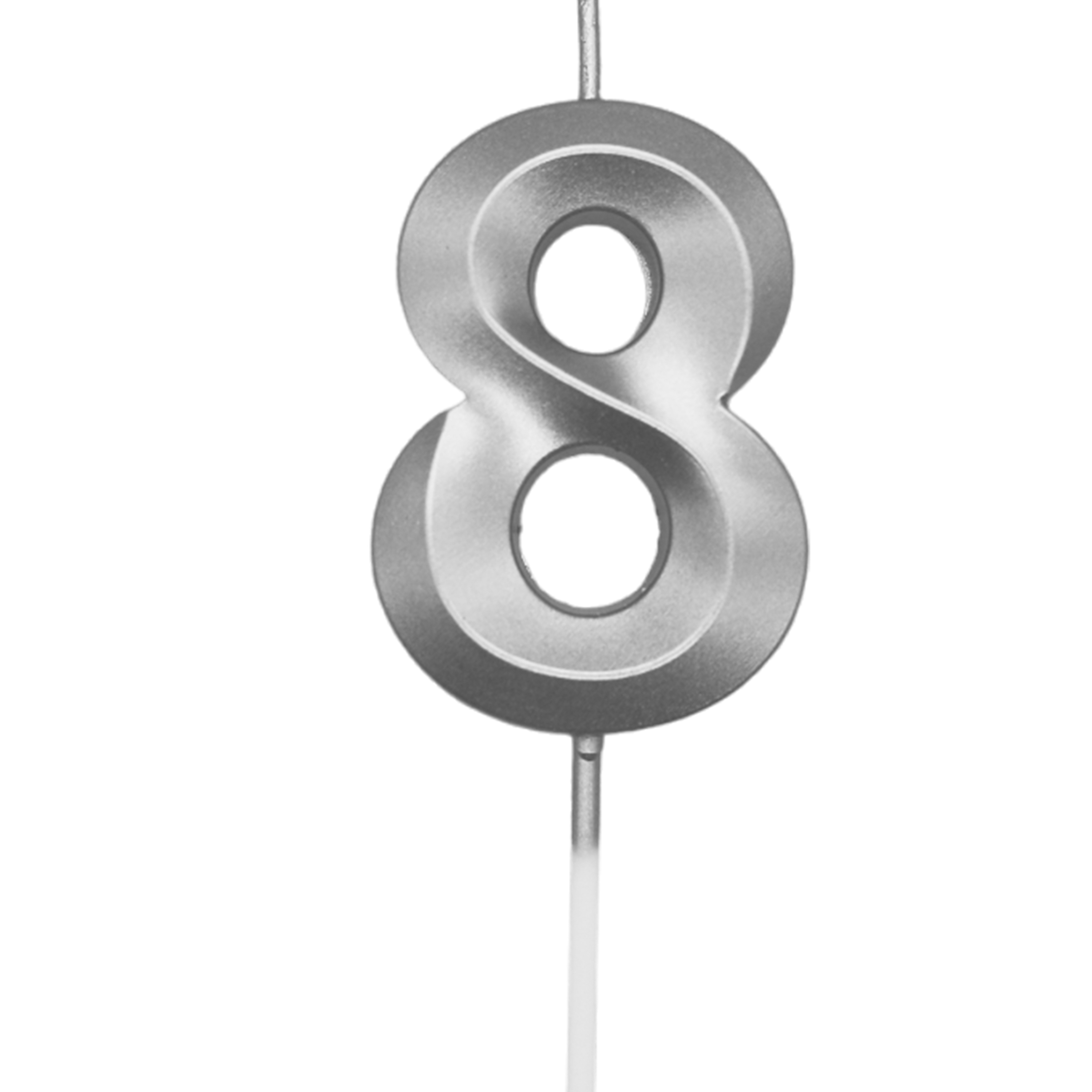 VELA MINI DESIGN PRATEADA NUMERO 8 VDP08