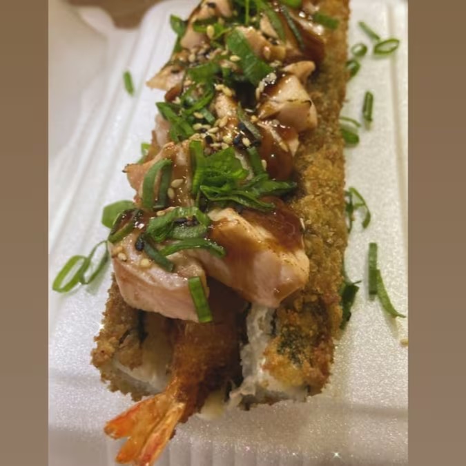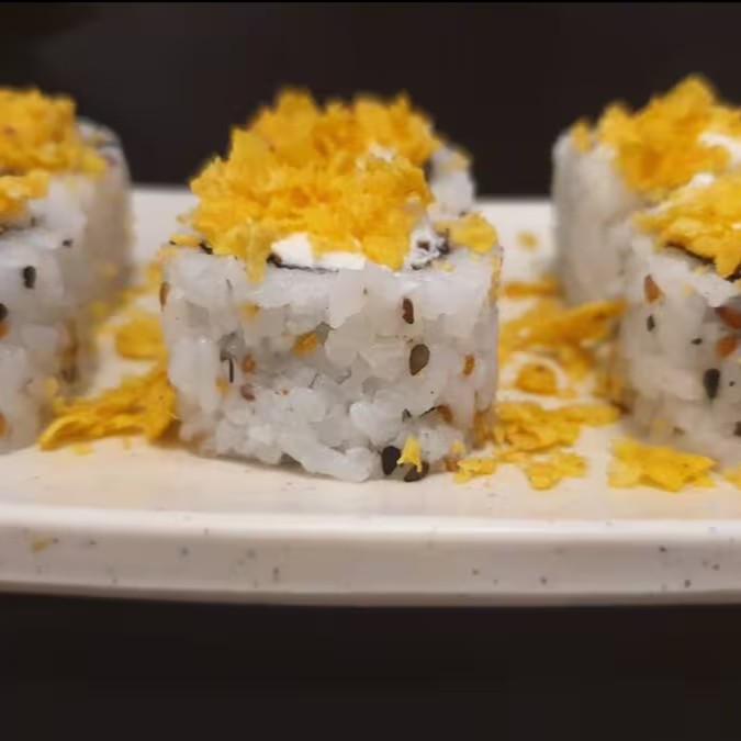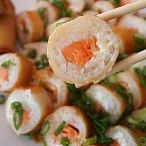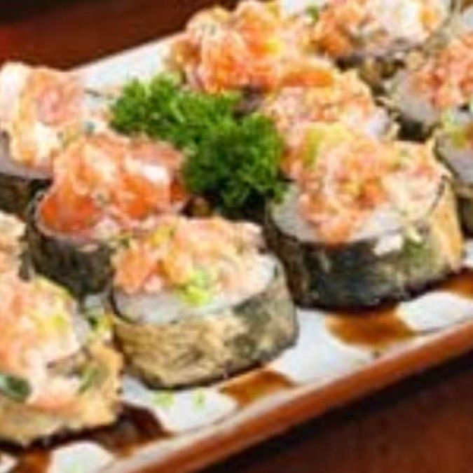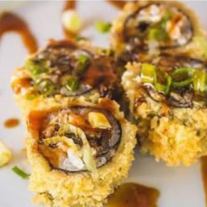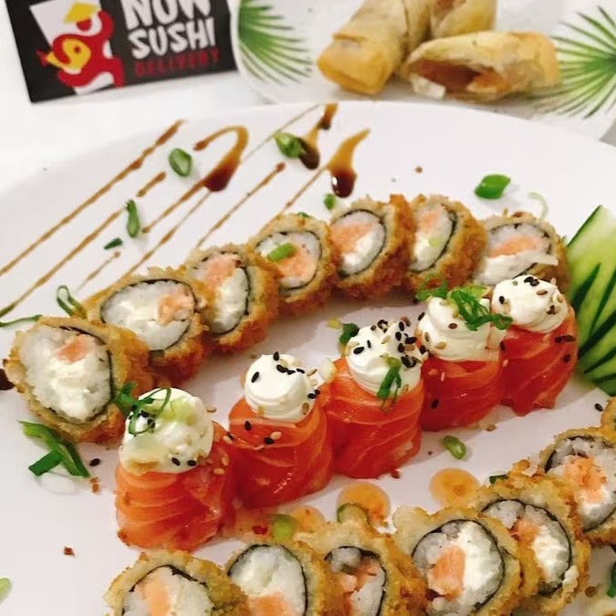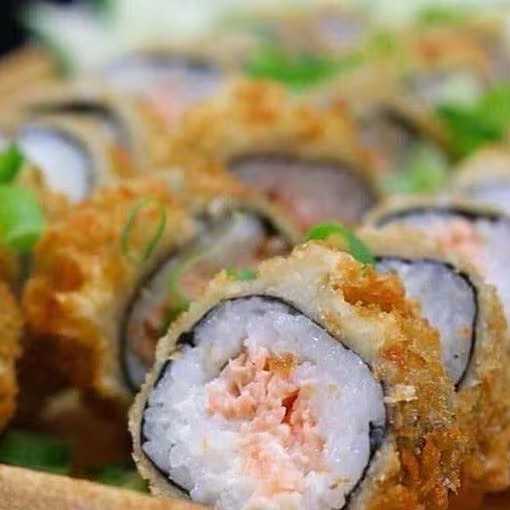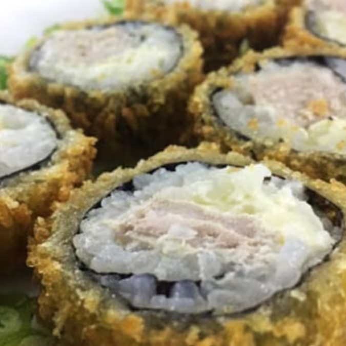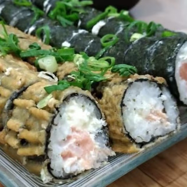 Salmão, arroz, alga, cream cheese, empanado na Panko e frito, Experimente esse sabor!