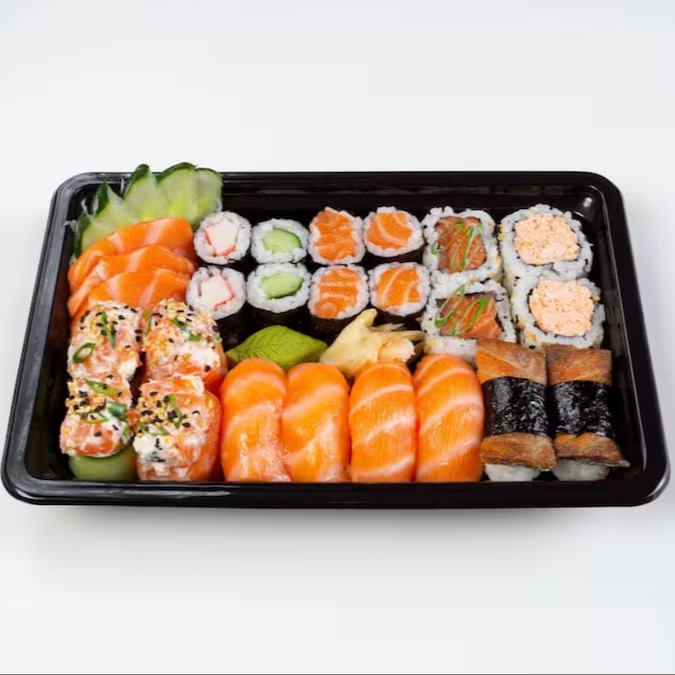 16 sashimis de salmão + 12 hot crocante + 06 philadelfia roll + 06 huramaki + 05 joe joe