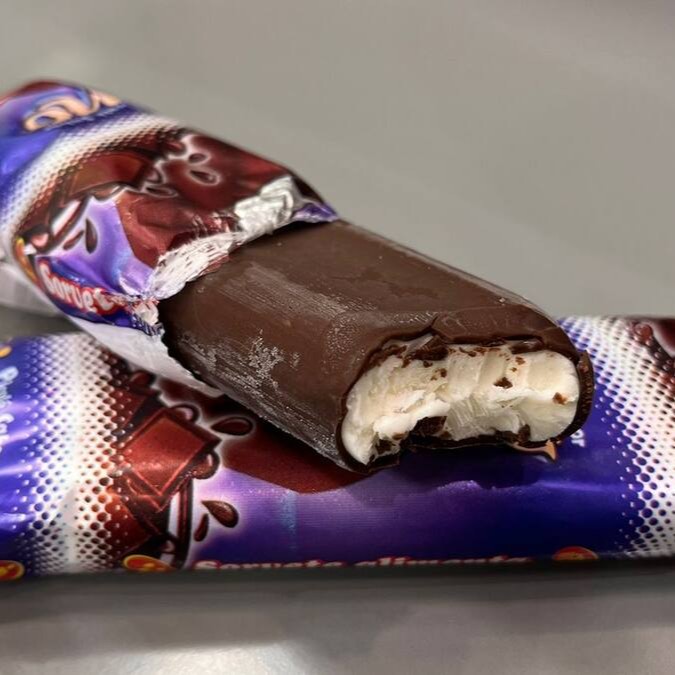 Picolé sabor nata, coberto com uma deliciosa casquinha de chocolate crocante