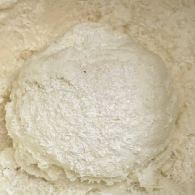Sorvete sabor coco branco com deliciosos pedaços de coco.
