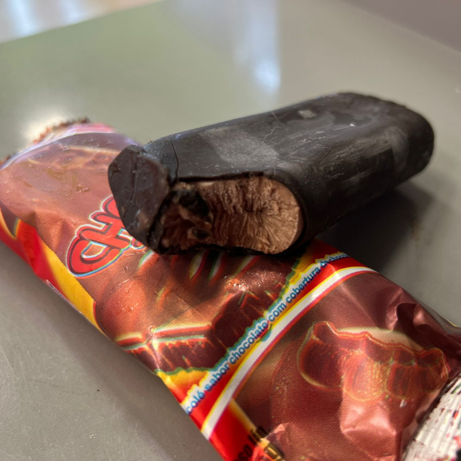 Picolé sabor chocolate coberto com uma deliciosa casquinha de chocolate crocante
