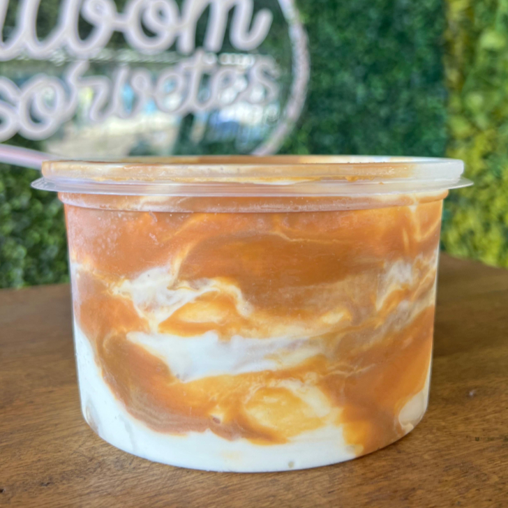 Sorvete sabor leite Ninho mesclado com uma deliciosa trufa de doce de leite.