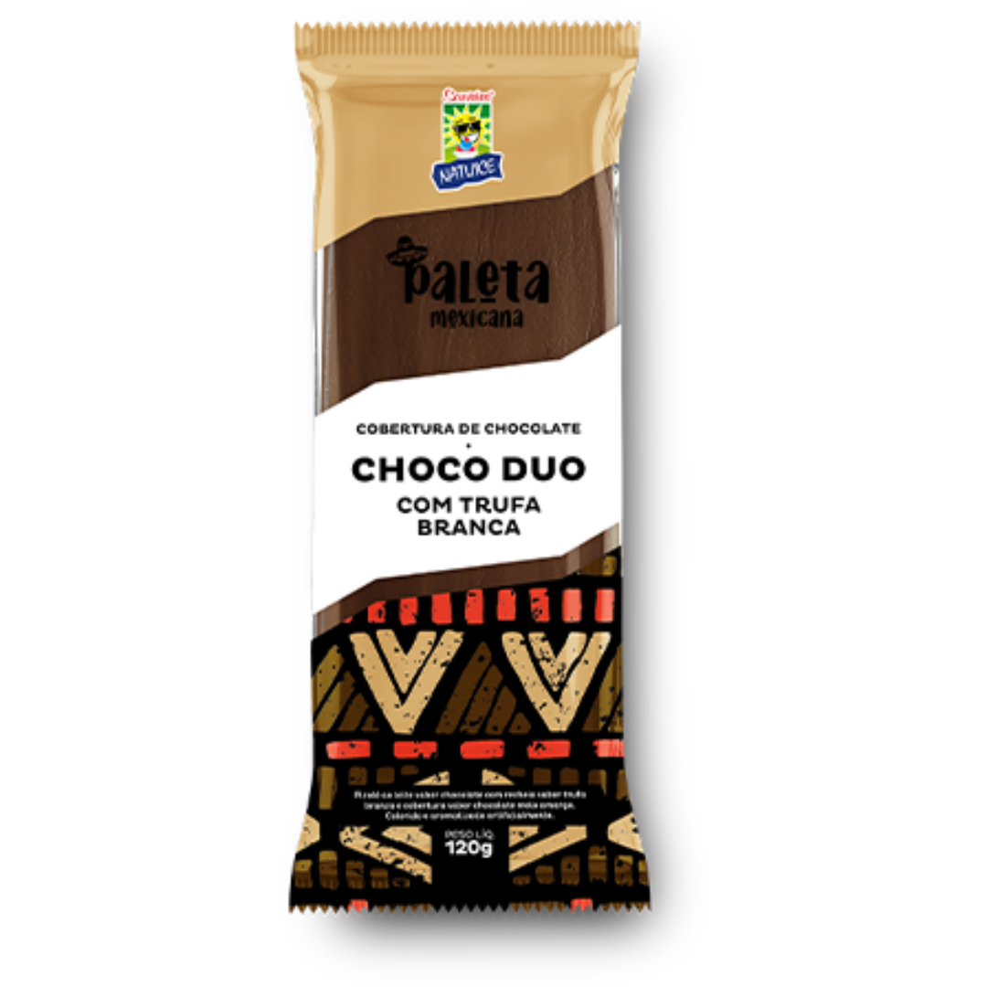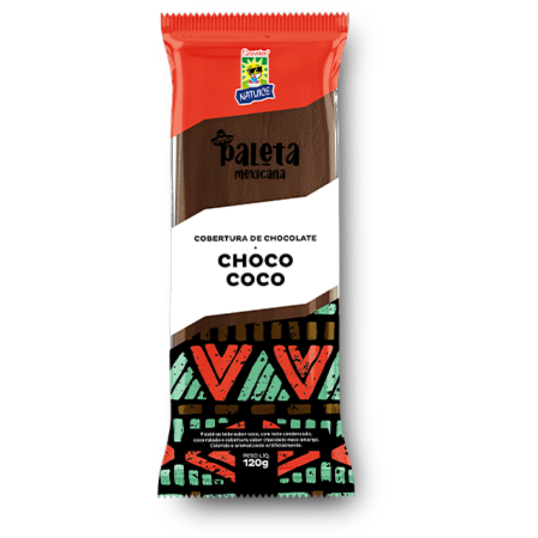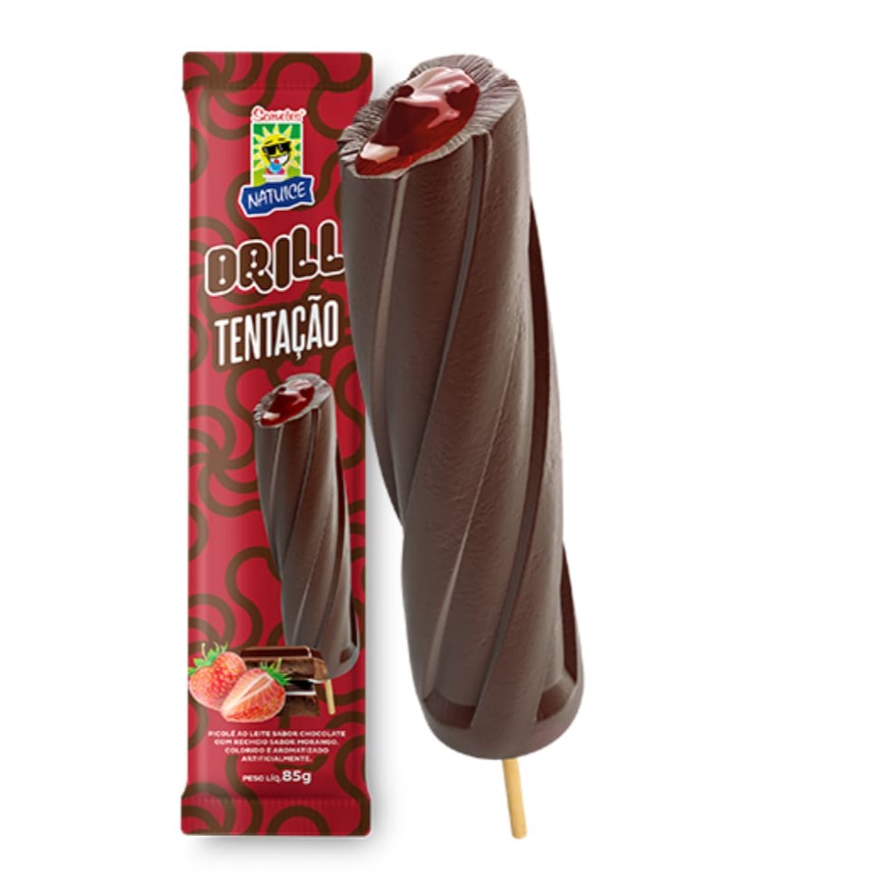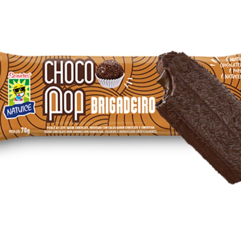 Picolé de brigadeiro e recheio cremoso de chocolate, coberto com uma deliciosa casquinha de chocolate e finalizado com granulado.