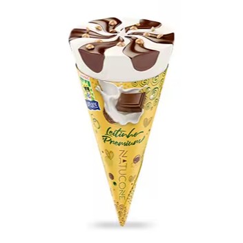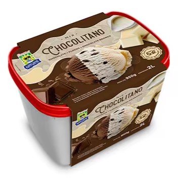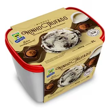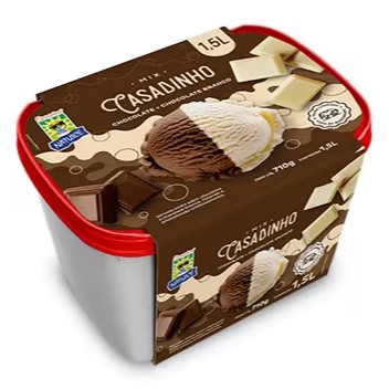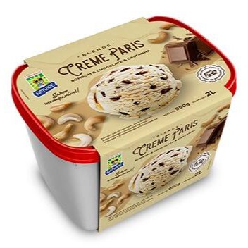 Sorvete de creme com lascas de chocolate e pedacinhos de castanhas de caju.