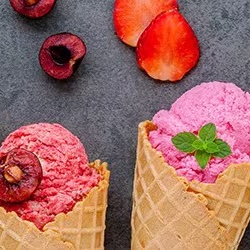 Sorvete de Leite com mescla de avelã, cacau e morango