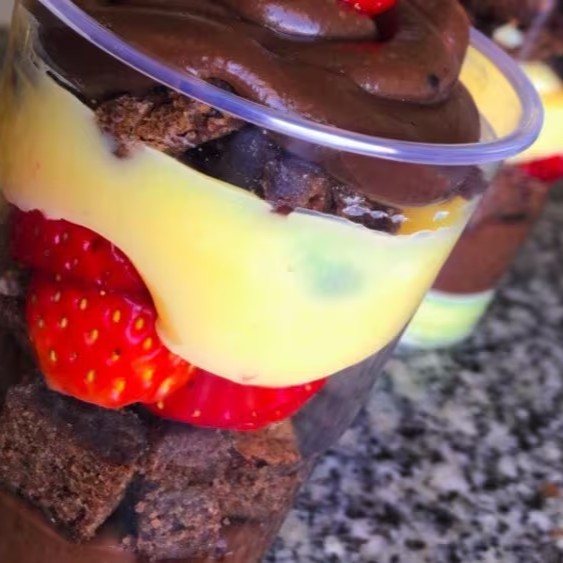 Morangos , Brigadeiro Branco, Creme de Chocolate, Brownie,