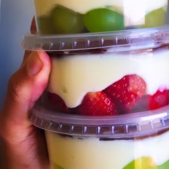 Nossa receita de sucesso , agora esta no potinho , feita com uvas frescas , brigadeiro de leite Ninho e finalizado com ganache de chocolate branco e leite em pó