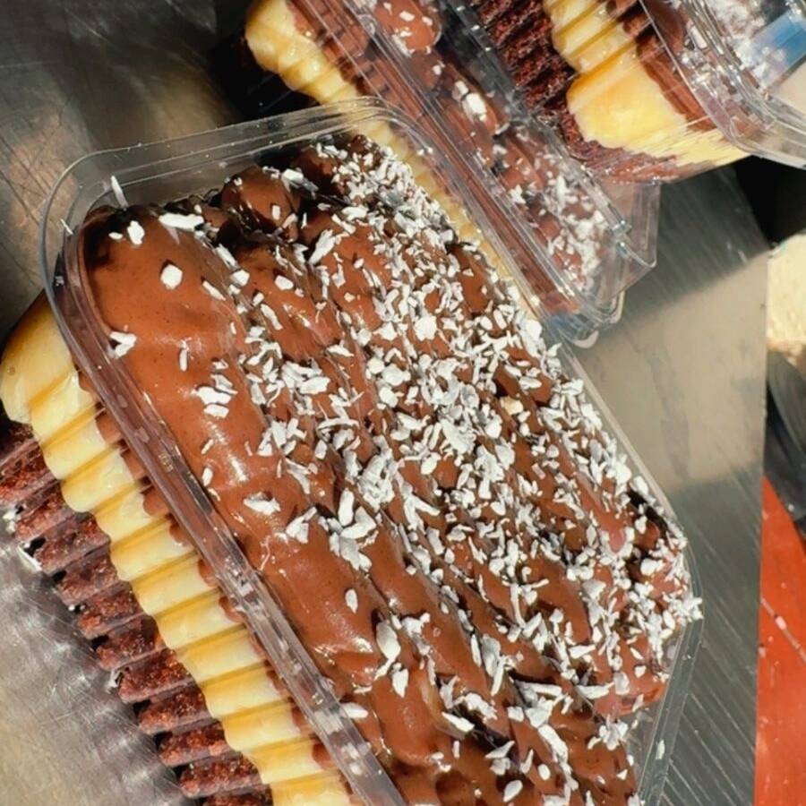 Deliciosas fatias , feitas a base de massa de brownie , com coberturas deliciosas , que sempre levam , chocolate, , podendo ter alterações na decoração.