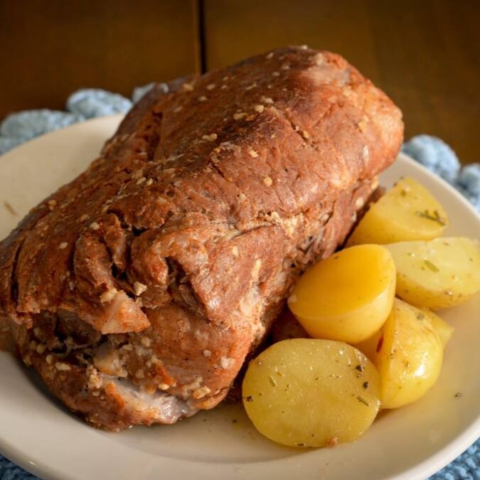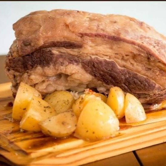 Pernil Suíno Assado no forno lentamente. Com um processo cuidadoso de preparo, cada mordida será uma explosão de sabores e texturas. Nossa carne suína é de altíssima qualidade e preparada por quem entende do assunto. Ideal para seu almoço de domingo em família ou com amigos, o Pernil Suíno é uma opção deliciosa para seu cardápio. Descubra a verdadeira experiência de um assado perfeito!