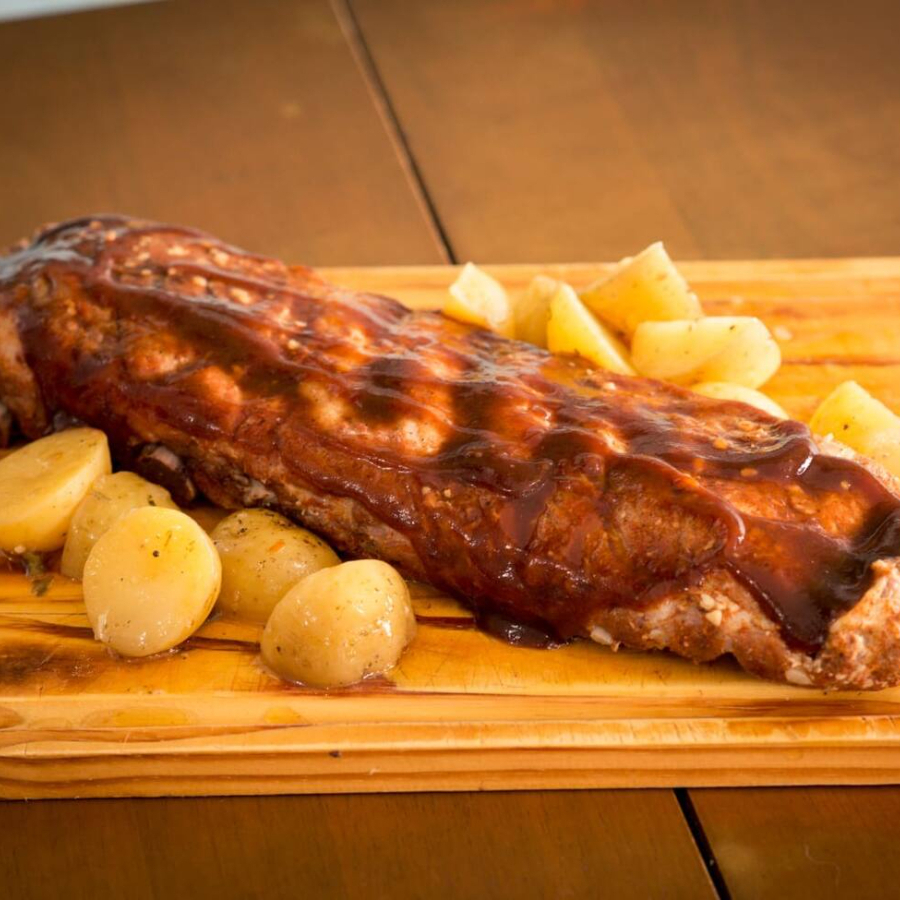 Delicie-se com a nossa suculenta costelinha suína, preparada com todo cuidado e carinho na churrasqueira a bafo, onde é assada lentamente até atingir a perfeição. Para completar, é besuntada com o nosso molho barbecue, feito com ingredientes selecionados e uma combinação de temperos exclusiva. O resultado é uma explosão de sabores na sua boca, que certamente fará você querer mais! Não perca a oportunidade de experimentar nossa costelinha, faça já o seu pedido!