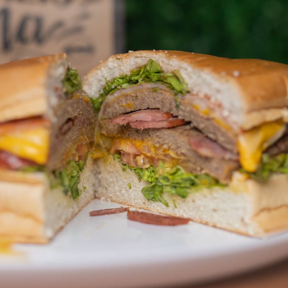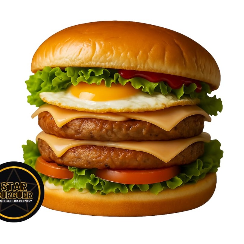 """Mais sabor, mais sustância! Pão macio selado, 2x hambúrgueres suculento, queijo derretido, presunto grelhado, ovo fresquinho, alface crocante, tomate selecionado e cebola fatiada – tudo finalizado com o nosso molho exclusivo da casa. Um lanche completo pra matar a fome com estilo."""