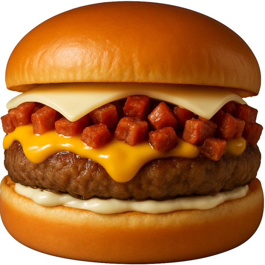 Pão brioche artesanal (sem gergelim), selado com nossa maionese dos dois lados, hambúrguer grelhado, cheddar cremoso de bisnaga, bacon em cubos bem douradinho e uma camada generosa de mussarela derretida.Uma combinação cremosa, crocante e cheia de sabor, feita pra quem ama um lanche caprichado e sem enrolação! Pediu, mordeu, se apaixonou.