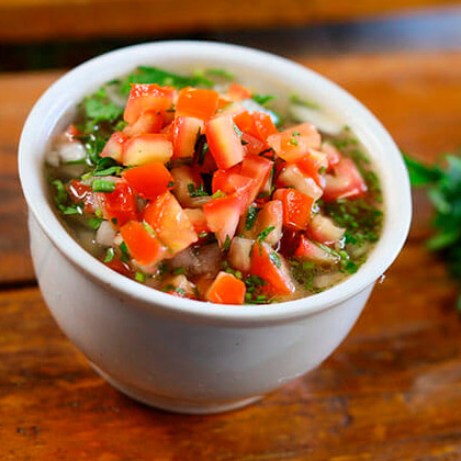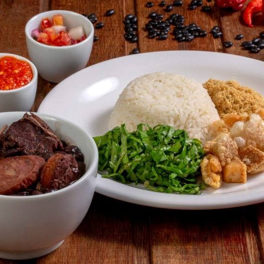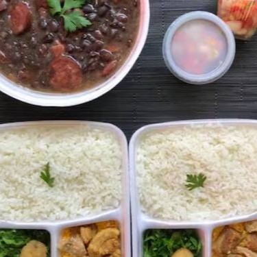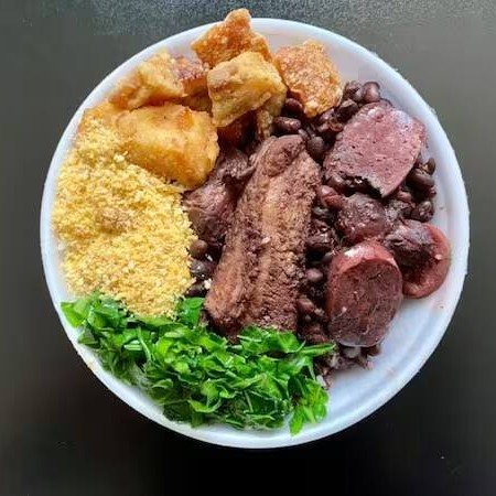 Feijoada Magra 500g(Costelinha Suína, Linguiça Calabresa e Pernil), Arroz, Farofa, Couve Refogada e Vinagrete.