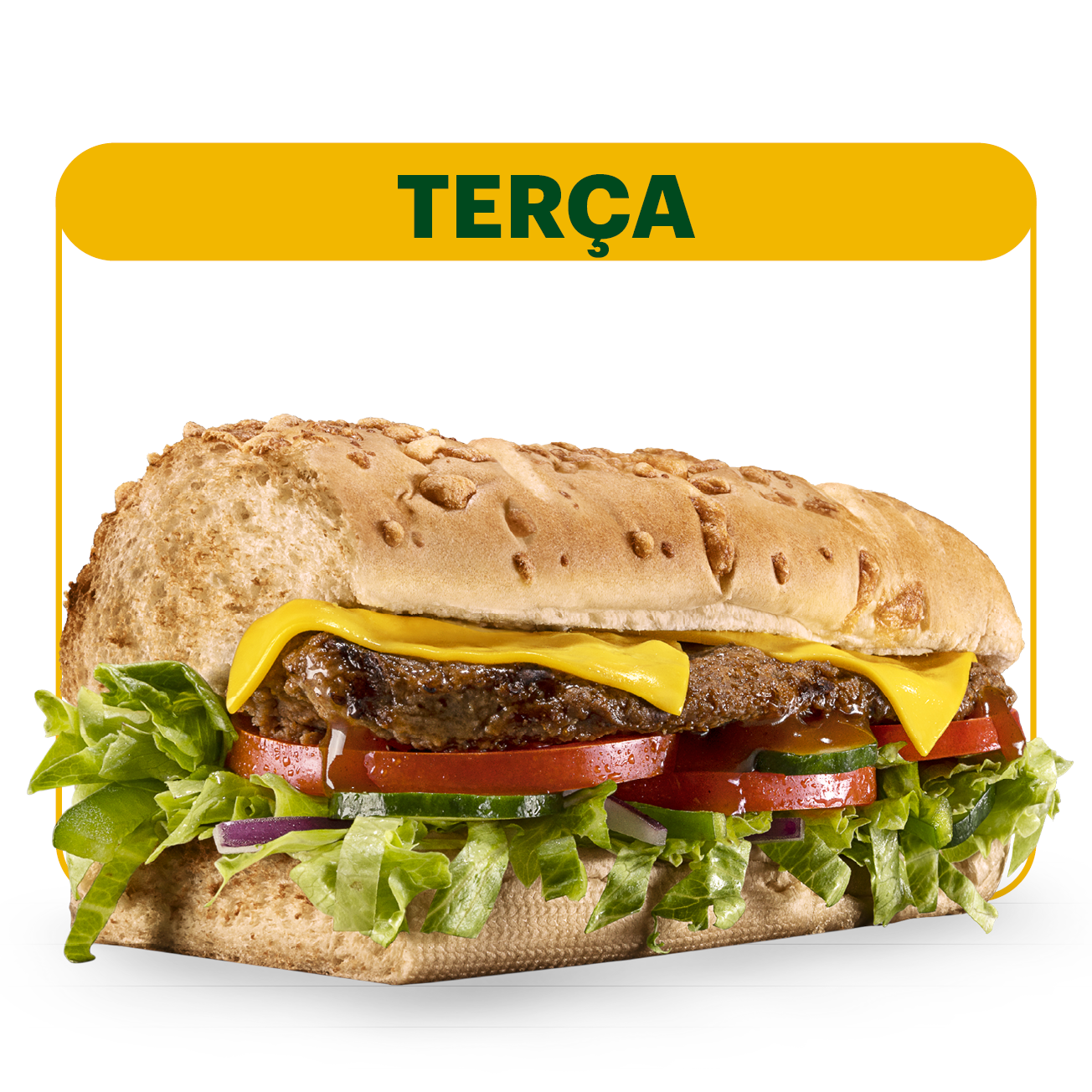 Apenas hoje o Steak Churrasco de 15cm + Bebida vira um footlong de 30cm. Aproveite!