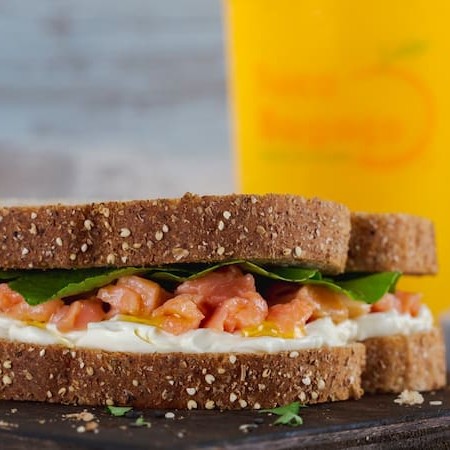 Pão Integral, Salmão Defumado, Cream Cheese e Rúcula