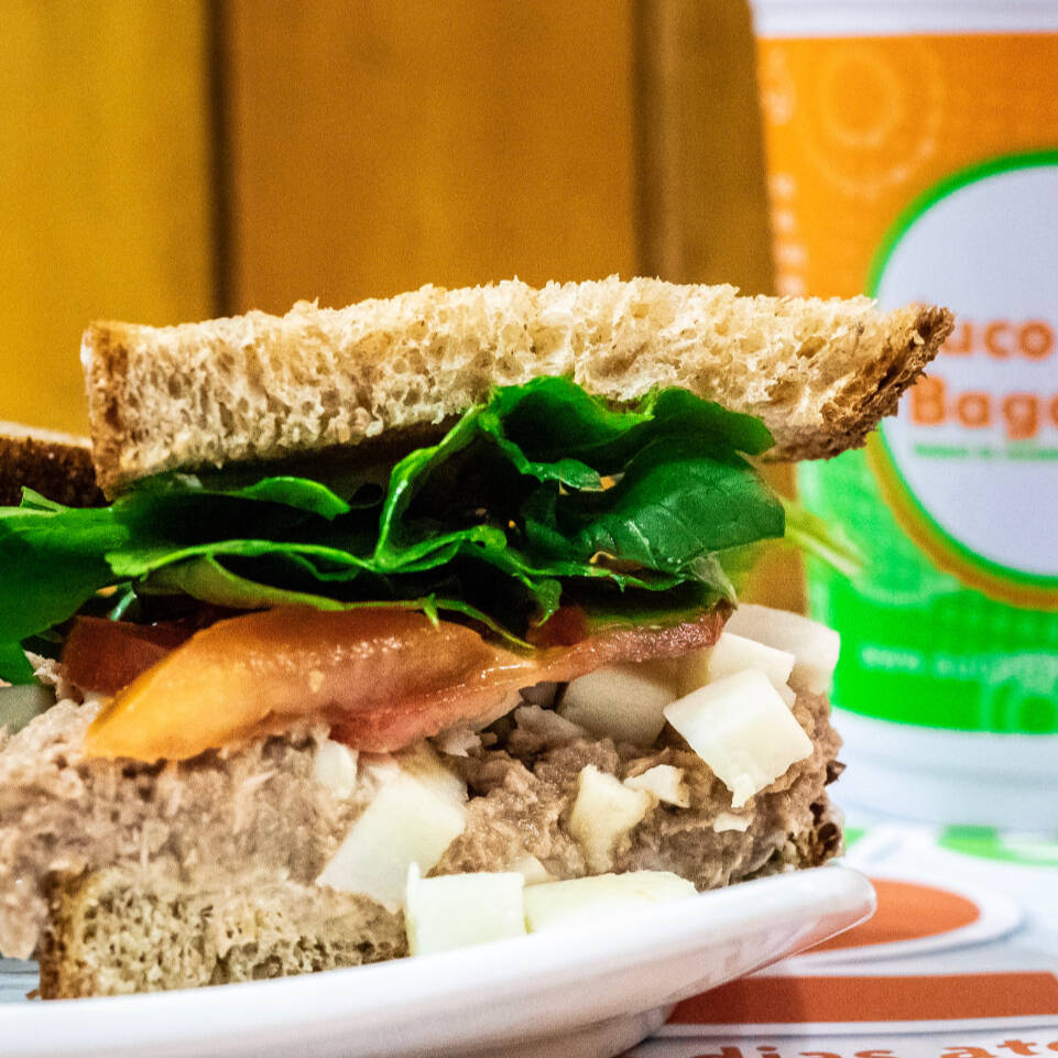 Pão Integral, Atum, Mussarela, Tomate, Maionese e Alface
