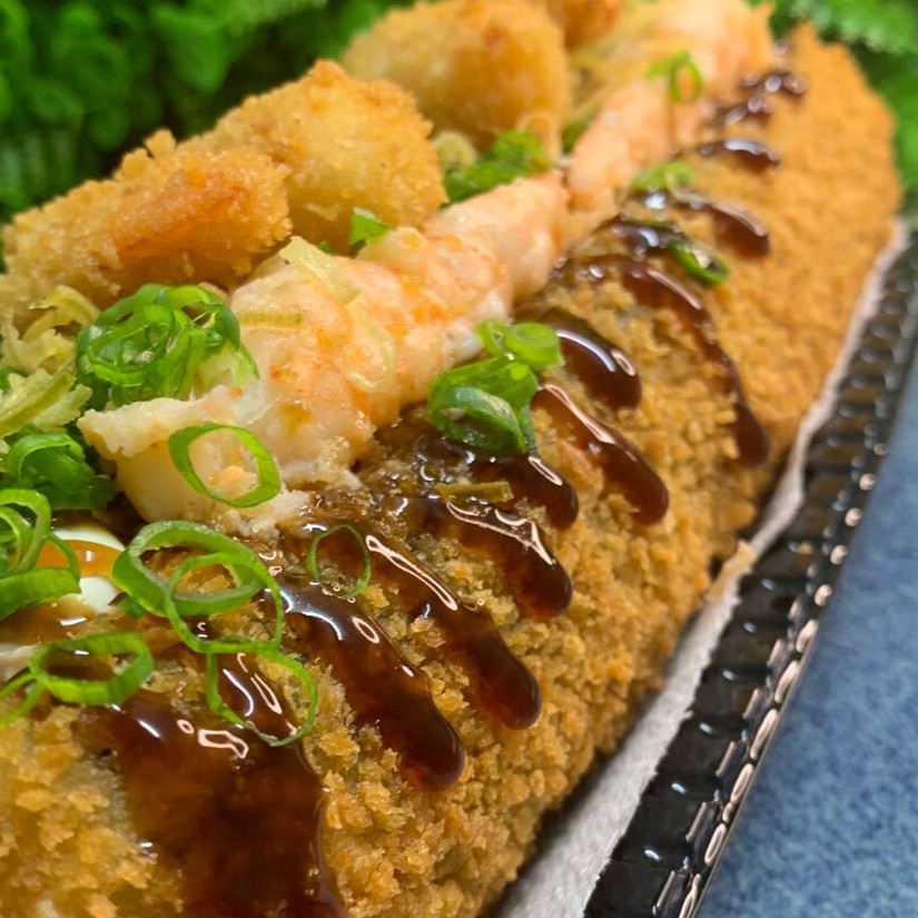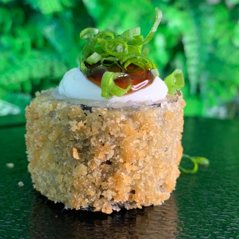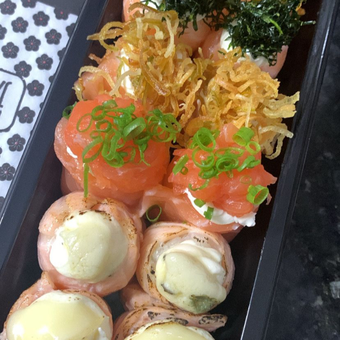 Camarão suculento envolto em arroz especial, combinado com cream cheese cremoso, cebolinha fresca e finalizado com um toque irresistível de molho tarê. Acompanha 3 shoyus premium e 1 hashi.