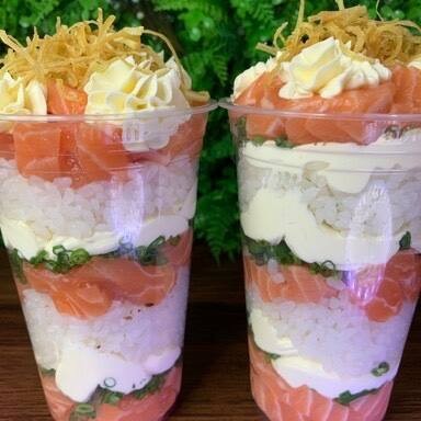 Copo recheado com arroz oriental, pedaços generosos de salmão fresco, cream cheese cremoso, cebolinha e um toque crocante de crisps de alho-poró. Perfeito para quem ama sushi de uma forma inovadora! Acompanha 3 shoyus premium e 1 hashi.