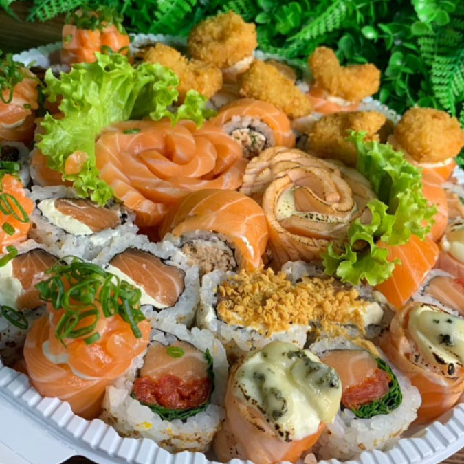 8 frutamaki, 6 uma fila, uramaki skin, 6 ura salmao, 6 joe fila, 6 especial salmao, 6 laminas de sashimi,