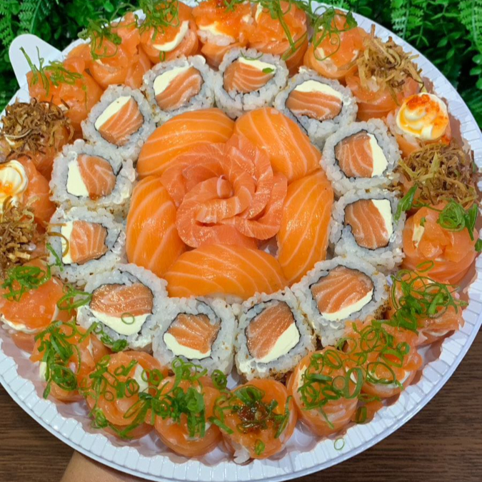 Salmão,arroz,camarão,kane,salmão selado,sunomono,cebolinha cream chease
